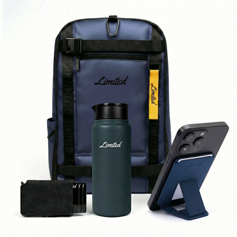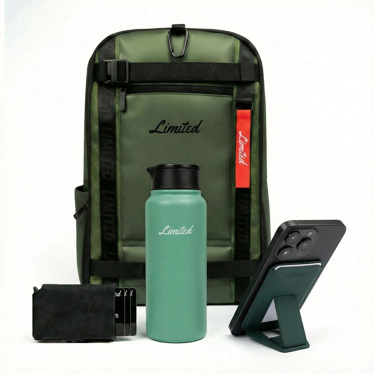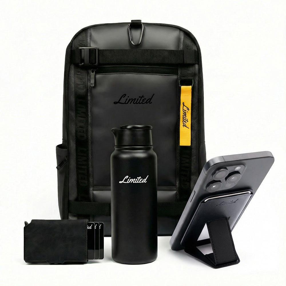 El Pack SOUL es el kit completo para moverte con todo lo esencial, bien ordenado y con el look Limited. Incluye Mochila SOUL, Billetera Slim Black, Botella de 1 litro y Flip Wallet: cuatro piezas que funcionan juntas para acompañarte en el día a día con comodidad, estilo y practicidad real.