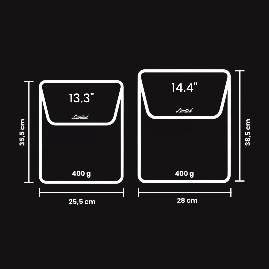 - Tamaños: 13.3 pulgadas (35.5 cm de largo x 25.5 cm de ancho) / 14.4 pulgadas (38.5 cm de largo x 28 cm de ancho)