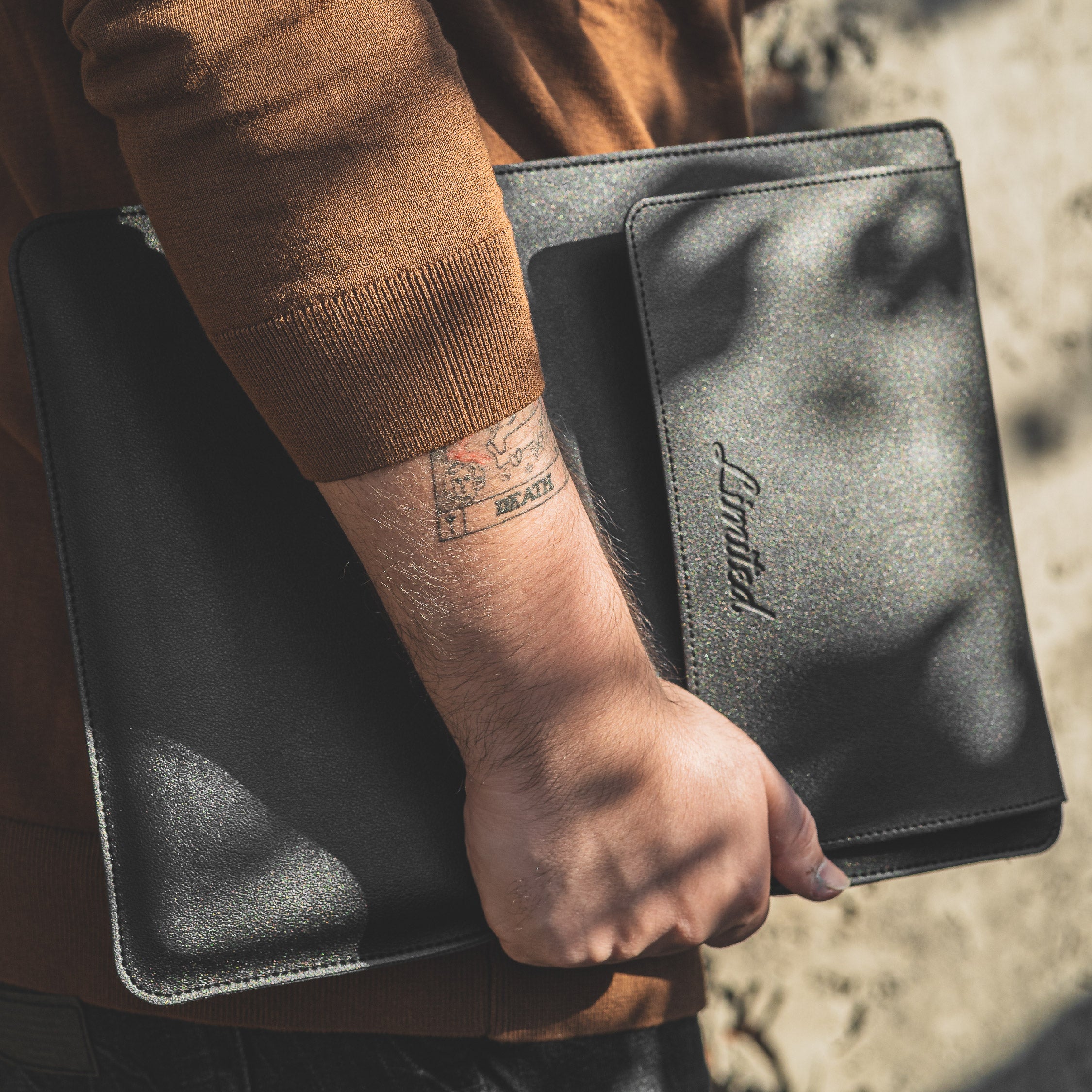 Ambas versiones incluyen el sistema de armado y espacio adicional para llevar cargadores, papeles o accesorios esenciales. Minimalismo funcional en cualquier medida.