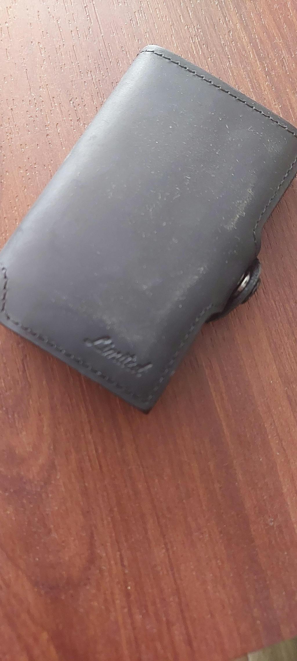 Billetera de cuero LIMITED con diseño delgado, compartimento RFID y mecanismo de extracción rápida para tarjetas – elegancia y seguridad en un solo accesorio.