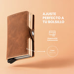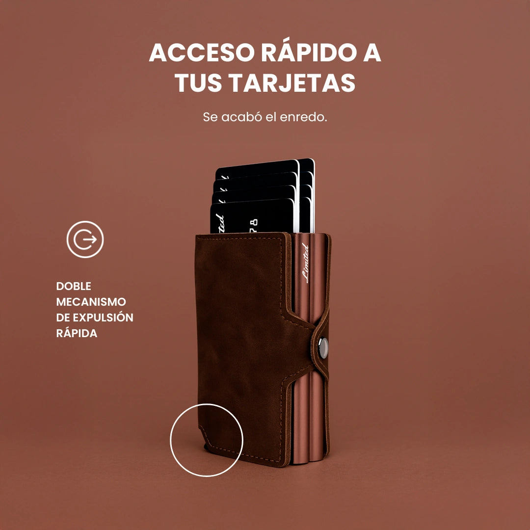 La Double Wallet incorpora dos sistemas ejectores, lo que te permite llevar más tarjetas sin perder el estilo ni aumentar el volumen excesivamente.
