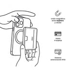 Sí, el tarjetero tiene MagSafe y se pega directo a tu iPhone o celular con anillo magnético.
