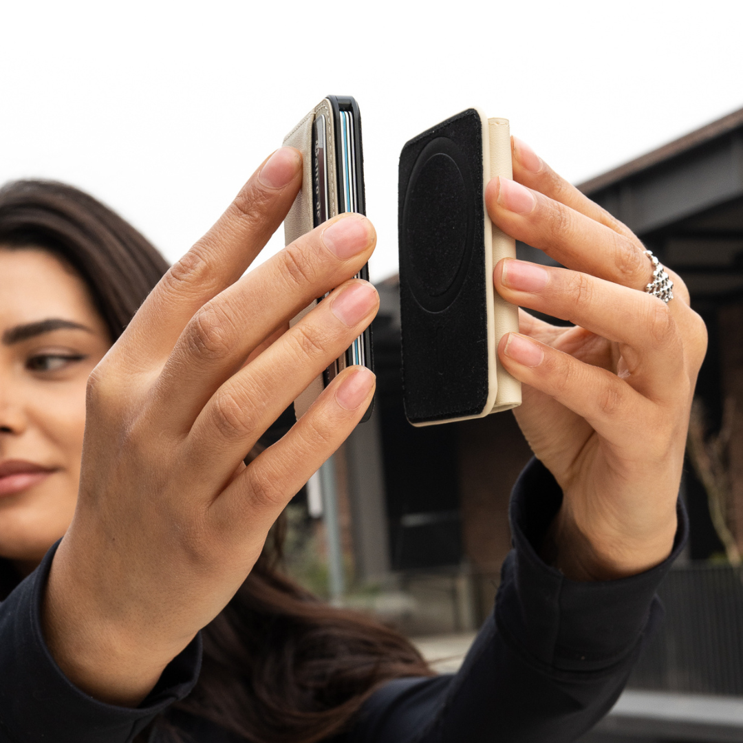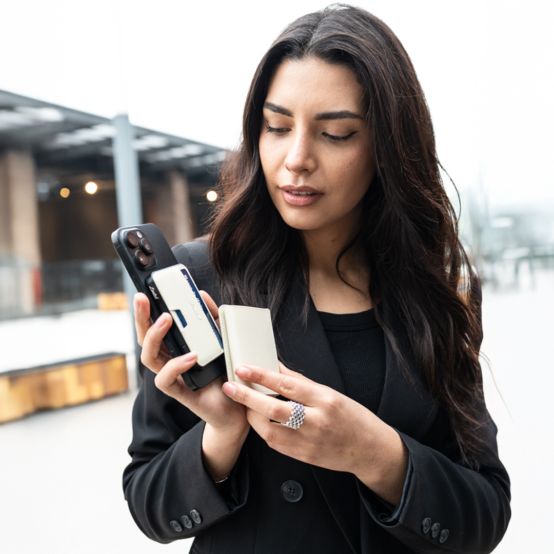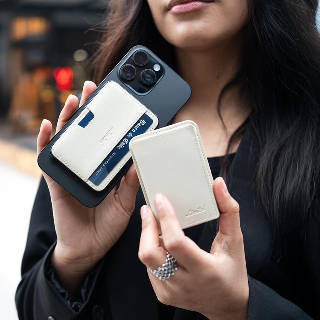 Sí, el tarjetero tiene MagSafe y se pega directo a tu iPhone o celular con anillo magnético.
