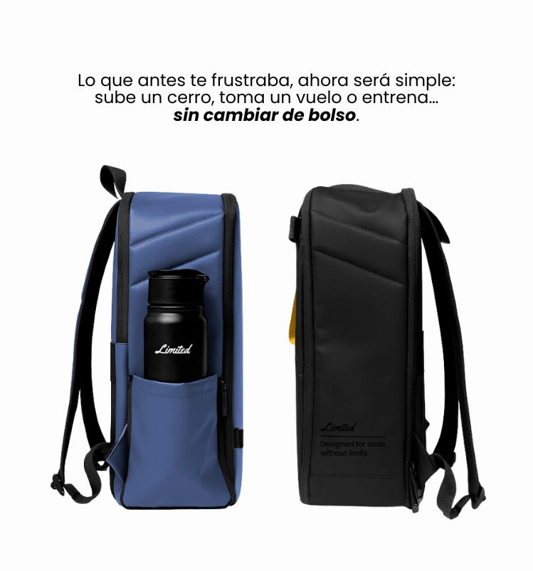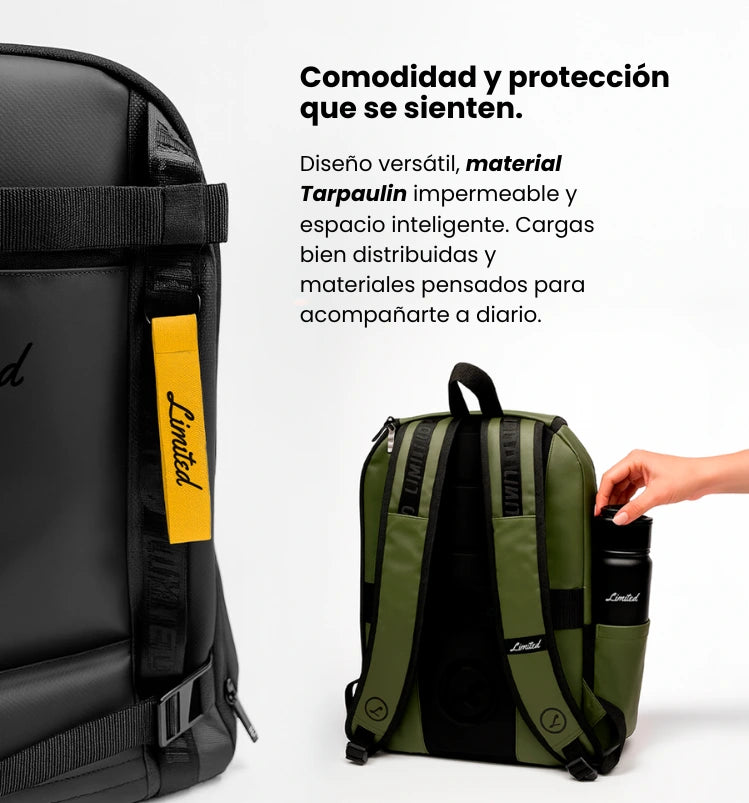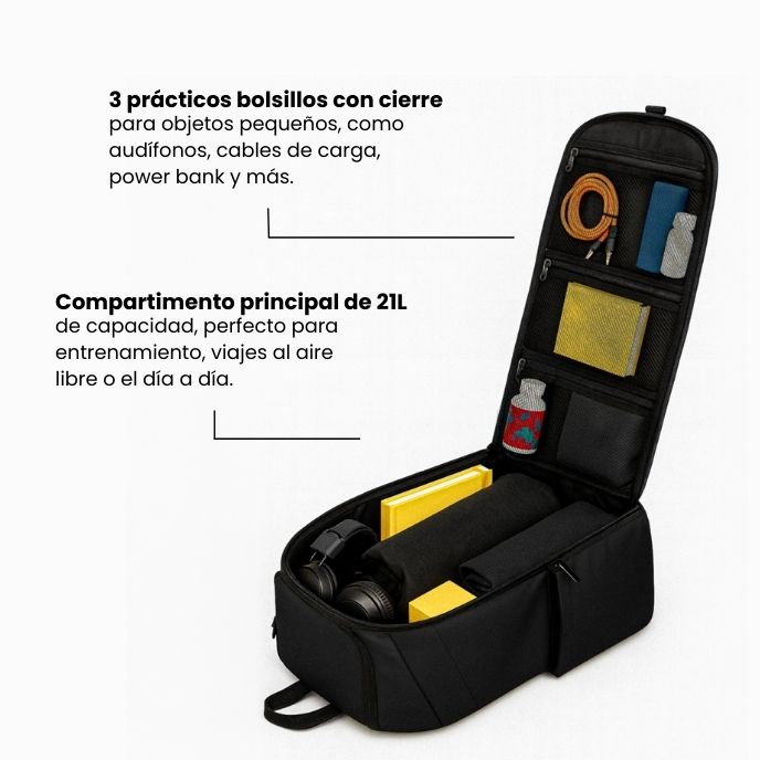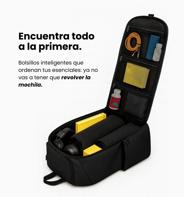 Sí, como lo leíste: una mochila diseñada para acompañarte en el día a día y en tus viajes, con espacio inteligente y estilo moderno. Compacta, cómoda y con la capacidad justa para que lleves todo sin sentirte cargado.
