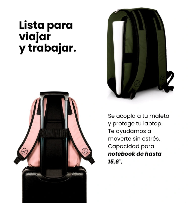 ✅ Apta como equipaje de mano en aerolíneas → Olvídate de pagar extra.